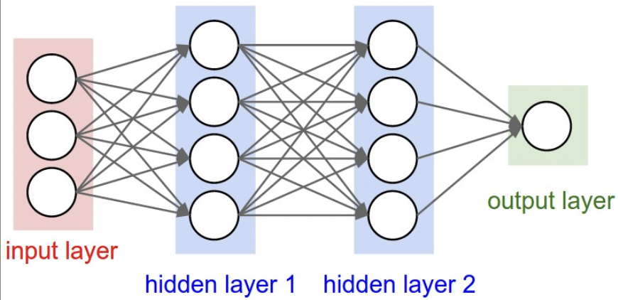 - 三层神经网络 s = W3 max(0,W2 max(0,W1x)), 隐藏层的向量大小是超参。