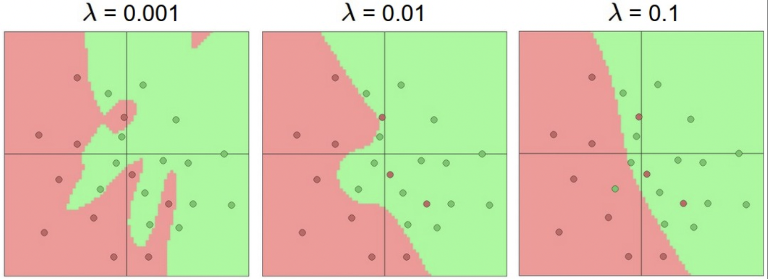 神经网络是非凸函数。实践中,小网络 loss 方差很大,可能收敛到 good place,也可能困在很差的局部值。而大网络方差小,即所有结果都差不多,且不过多依赖初始化。 - 正则化强度是控制过拟合的首选方案。regularization strength 越高,越平滑。