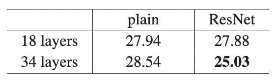 - 粗红线是34层的测试精度,细红线是训练精度,在刚开始的阶段,由于训练时用了大量数据增强,使得训练误差相对较大,测试时没有数据增强,噪音低。
