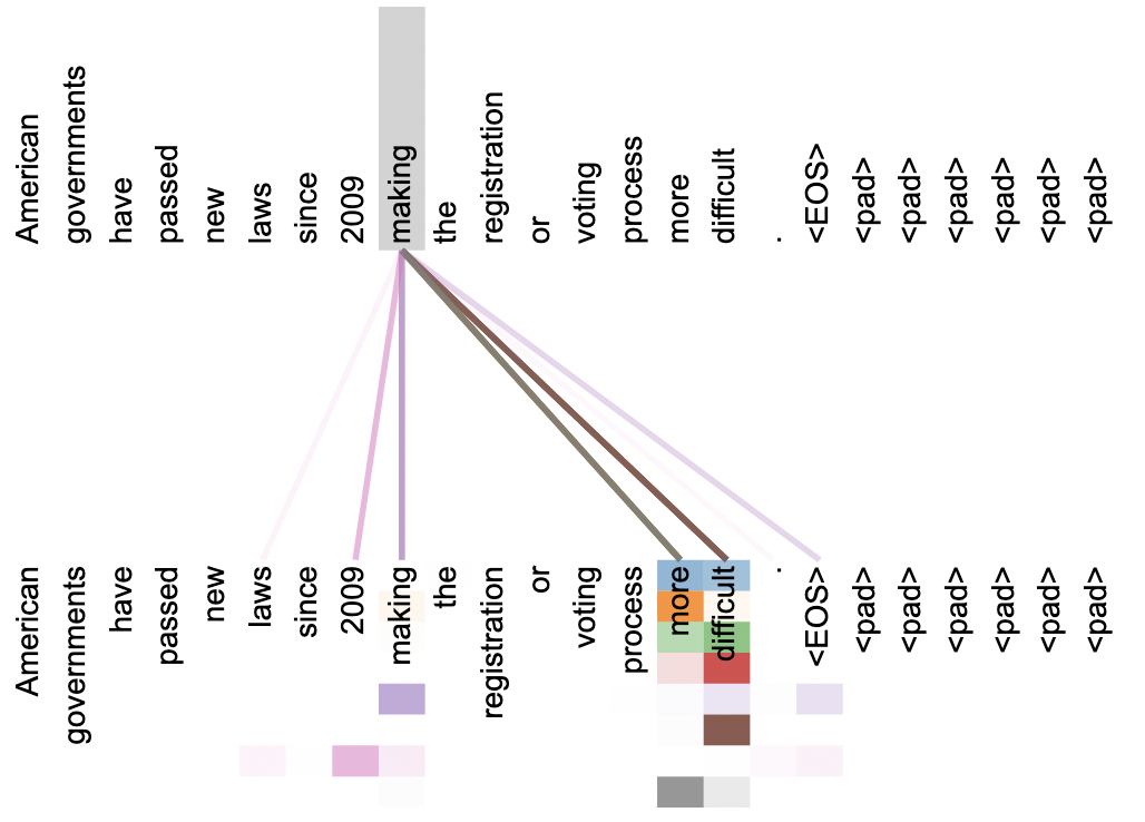 making the registration more difficult,query 是making,和more,difficult的相似度最高,则 value 中making对应位置的 token 组成就变成了这三个词的加权和。