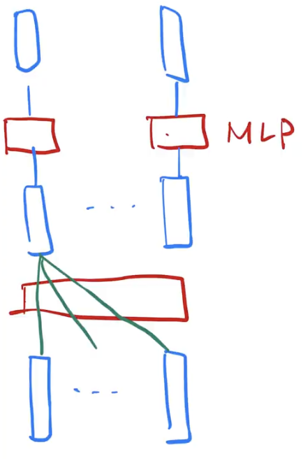 - attention 起的作用:把整个序列里的信息抓取出来,做一次汇聚(aggregation),所以单个向量就已经包含了它对序列中感兴趣的东西,信息已经抓取出来了。以至于在做投影 MLP 的时候,映射成更想要的语义空间的时候,因为单个向量已经含有里序列信息,所以每个 MLP 只要对每个点独立做就行了。因为在 attention 层里序列信息已经被汇聚完成,所以后续 MLP 部分是可以对序列分开成单个向量做的。